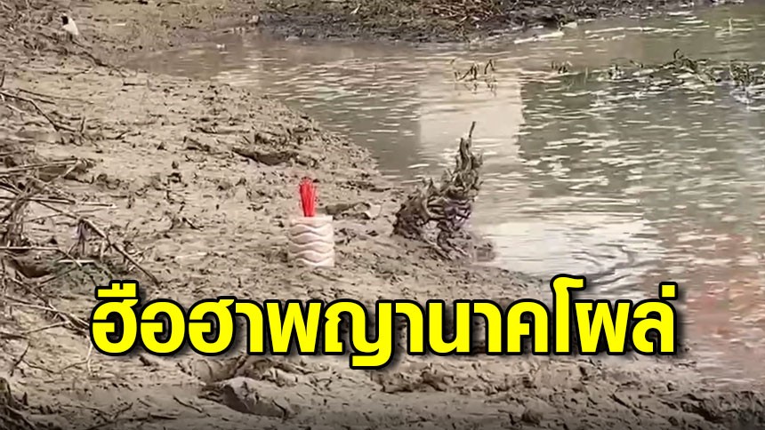 ฮือฮา! เศียรพญานาคโผล่ริมคลอง พร้อมกบสีทองเคียงข้าง ชาวบ้านแห่บูชา