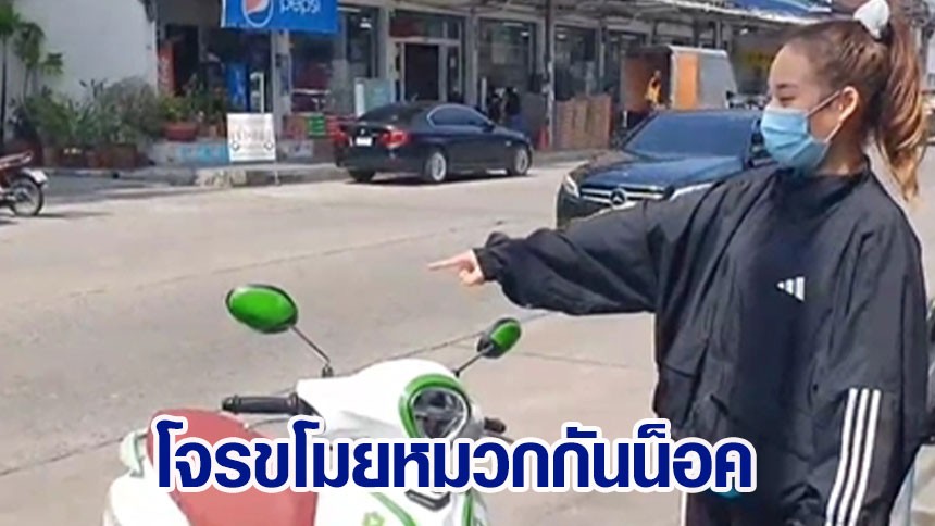 ล่าสุดวันนี้ (9 พ.ย.) เมื่อเวลา 13.00 น. ผู้สื่อข่าวลงพื้นที่บริเวณหน้าร้านเบทาโกร เมืองทองธานี ซอยแจ้งวัฒนะ - ปากเกร็ด ต.คลองเกลือ อ.ปากเกร็ด จ.นนทบุรี พบน.ส.ณหทัย จันทโรทัย อายุ 24 ปี (เจ้าของรถ) พนักงานร้านดังกล่าวหลังจอดรถยี่ห้อฮอนด้า ทะเบียน 5ขฉ 9185 กทม.ไว้หน้าร้านถูกคนร้ายขี่จักรยานยนต์มาขโมยหมวกกันน็อคยี่ห้อ ZEUS ราคาประมาณ 2,500 บาท ที่แขวนไว้กับกระจกรถมองข้างของจักรยานยนต์เหตุเกิดวันที่ 8 พ.ย.65 เวลาประมาณ 15.46 น.กล้องวงจรปิดจับภาพไว้ได้แจ้งความไว้ที่สภ.ปากเกร็ด