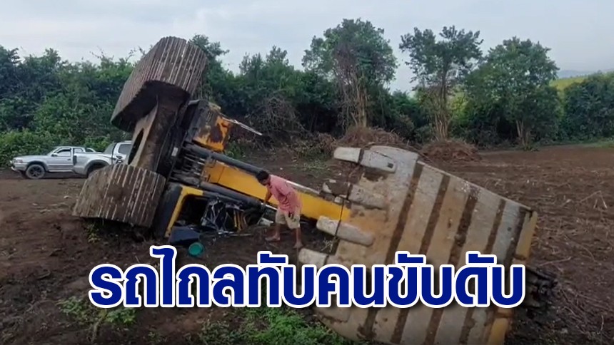 สลด! แบคโฮไถลตกจากรถบรรทุกขณะเตรียมขนย้าย คนขับกระเด็นตก ถูกทับดับ