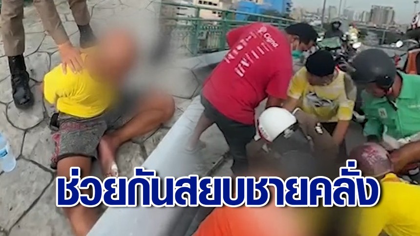 ชุลมุน! ตร.พร้อมพลเมืองดี ช่วยชายคลั่ง ใช้มีดเฉือนคอตัวเอง กลางสะพานปิ่นเกล้า