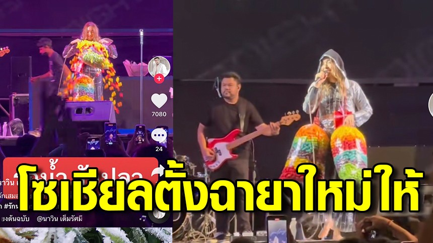 จะปีเก่าหรือปีใหม่ สาวสวยเสียงดี ปาล์มมี่ ก็ยังไม่มีแผ่ว ล่าสุดเล่นงานคอนเสิร์ตที่ จ.อยุธยา แฟนคลับได้มอบพวงมาลัยอาหารปลา ซึ่งเป็นขนมหลายสีให้กับนักร้องสาว