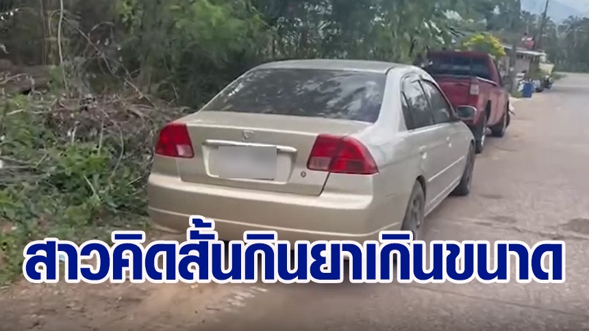 สาวส่งแชตให้สามีไปรอรับศพ กินยานอนหลับเกินขนาดในรถ ก่อนชาวบ้านไปพบ ช่วยไว้ได้ทัน