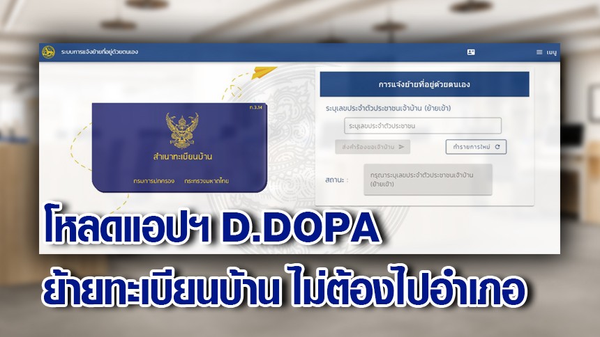 ย้ายทะเบียนบ้านทำออนไลน์ได้แล้ว! รัฐบาลเปิดแอปฯ D.DOPA พร้อมหลากธุรกรรมในออนไลน์