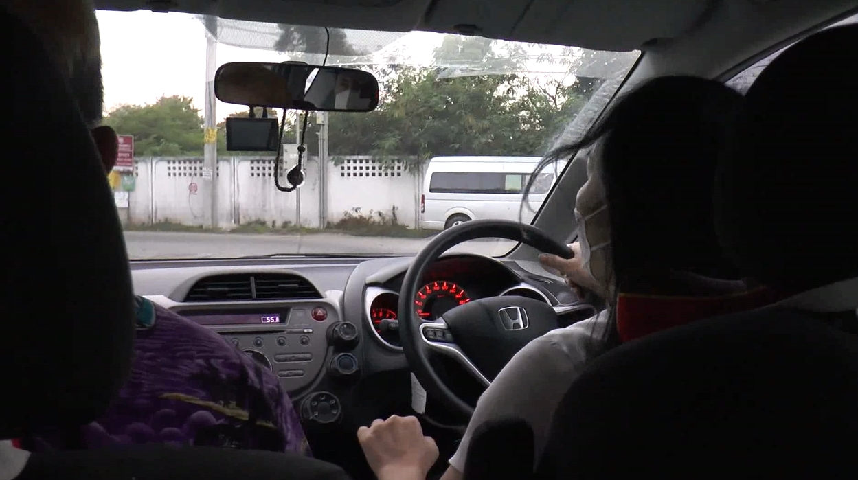 เมื่อเวลา 13.30 น.วันที่ 1 ก.พ. ผู้สื่อข่าวได้พบหญิงพิการขาลีบ กำลังสอบภาคปฏิบัติเพื่อทำใบอนุญาตขับขี่รถยนต์ ที่ลานทดสอบ สำนักงานขนส่ง จ.สมุทรปราการ ทราบชื่อ น.ส.กนกสินี สีลาพรหม อายุ 53 ปี อยู่ ซ.จรัญสนิทวงศ์ 3 แขวงวัดท่าพระ เขตบางกอกใหญ่ กรุงเทพมหานคร โดยมีครูจิตอาสา ลูกครึ่งญี่ปุ่น สัญชาติไทย คอยยืนลุ้นให้กำลังใจอยู่ข้างสนามสอบ ทราบชื่อ นายเอกรินทร์ เตรูย่า หรือ ครูโยโกะ อายุ 50 ปี ชาวสมุทรปราการ อาชีพครูสอนขับรถยนต์อิสระ
