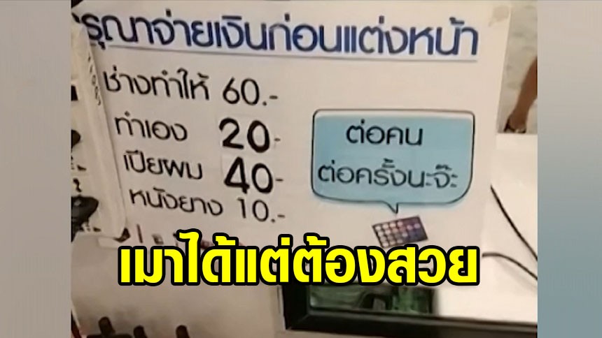 โดยในคลิปพบว่ามีชั้นวางเครื่องสำอางต่างๆ ทั้งแป้ง รองพื้น ที่ปัดแก้มและที่แต่งตา รวมทั้งยังมีที่หนีบผม อุปกรณ์ทำผมต่างๆอีกด้วย นอกจากนี้มีป้ายบอกบริการและราคาไว้พร้อม ระบุว่า “กรุณาจ่ายเงินก่อนแต่งหน้า คิดราคาต่อคนต่อครั้ง ช่างทำให้ 60 บาท ทำเอง 20 บาท เปียผม 40 บาท หนังยาง 10 บาท”