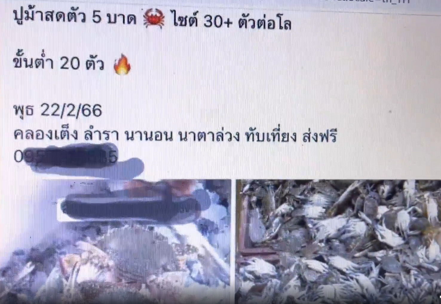 ผู้สื่อข่าวรายงานว่า พบโพสต์ขายลูกปูม้าสดว่อนโซเชียล ตัวละ 5 บาท ซึ่งเป็นไซส์ขนาด 30 กว่าตัวโล ซึ่งถือว่าเป็นลูกปูที่ขนาดตัวยังเล็กมาก เชื่อนำเข้าจากต่างจังหวัด โดยเฉพาะจากแถวตลาดมหาชัย จังหวัดสมุทรสาคร จึงมีสินค้าให้สามารถโพสต์ขายเป็นล่ำเป็นสัน โดยบางคนแสดงความคิดเห็นว่า พบเห็นมีการวางขายตามตลาดสดในหลายจังหวัด เช่น สงขลา นครศรีธรรมราช และเชื่อว่ามีทุกจังหวัดที่อยู่ติดชายทะเล