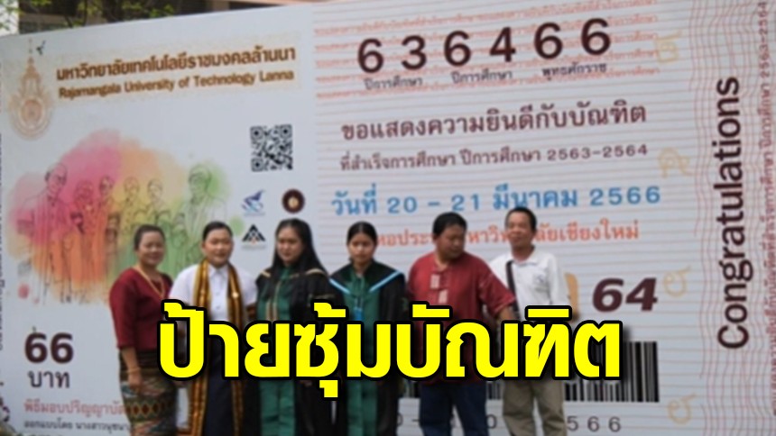 มิติใหม่ป้ายแสดงความยินดีบัณฑิตทำเป็นรูปลอตเตอรี