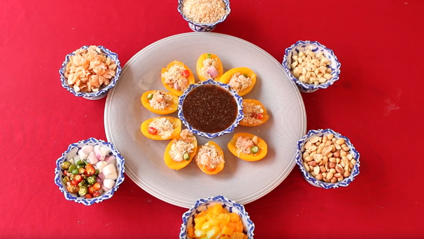 เมนูที่ 3 มีชื่อว่า "เมี่ยงคำมะยงชิด" ส่วนผสมก็เป็นแบบเมี่ยงคำทั่วไป กุ้งแห้ง ถั่วลิสง หอมแดง พริกขี้หนู ขิงหั่นเต๋า มะปรางเปรี้ยวพันธุ์กาวางแทนมะนาว เมื่อจะรับประทานนำส่วนผสมต่าง ๆ วางในมะยงชิดที่ผ่าซีกคว้านเม็ดออก ราดด้วยน้ำเมี่ยงคำที่รสชาติหวานเค็ม รสชาติอร่อยลงตัวมาก ๆ