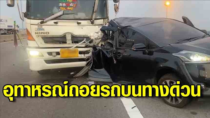 อุทาหรณ์! เก๋งถอยรถบนทางด่วนไกล 1 กิโลเมตร ถูกรถบรรทุกชนท้ายบาดเจ็บ
