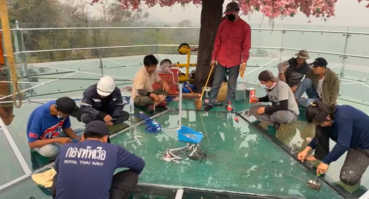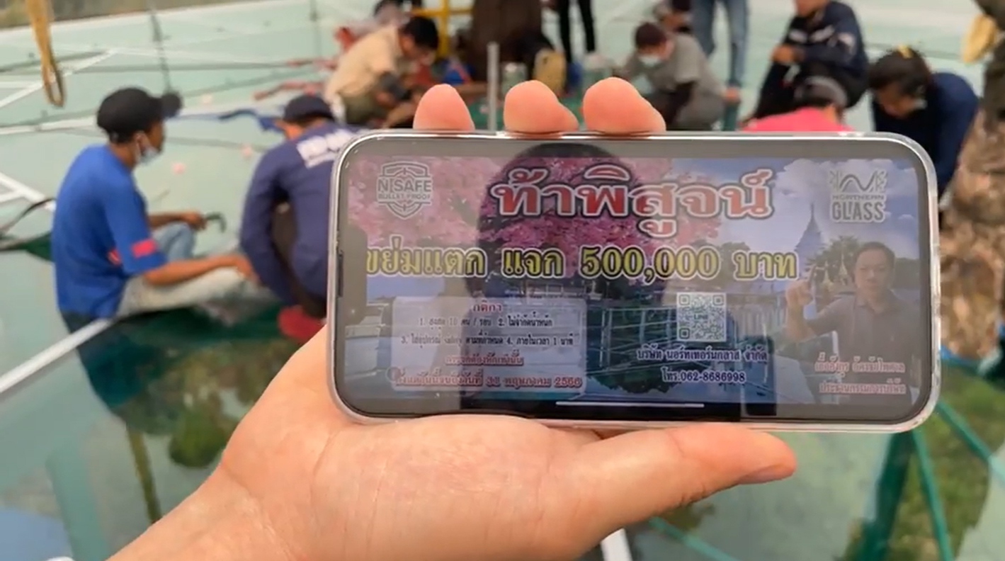 วัดผาเงา ท้าพิสูจน์ความแข็งแรงกระจกสกายวอล์ก ขย่มแผ่นร้าว ทำแตกรับ 5 แสน