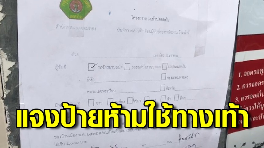 แท็กที่เกี่ยวข้อง จอดรถบนทางเท้า ,แปะป้ายห้ามจอดทางเท้า ,เทศกิจแปะป้ายห้ามจอดทางเท้า