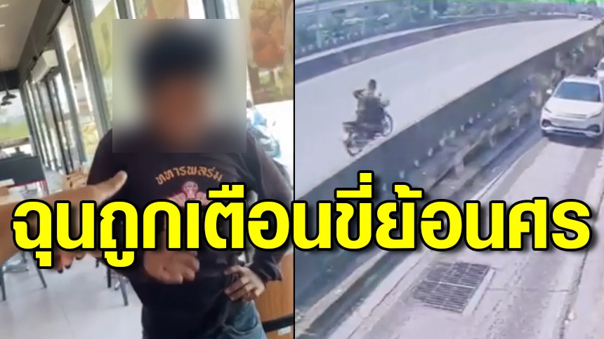 ที่นี่บางเสาธง! ขาใหญ่ฉุนเสียฟอร์มยอมไม่ได้ โดนเตือนขี่จยย.ย้อนศรตามชกถึงร้านอาหาร