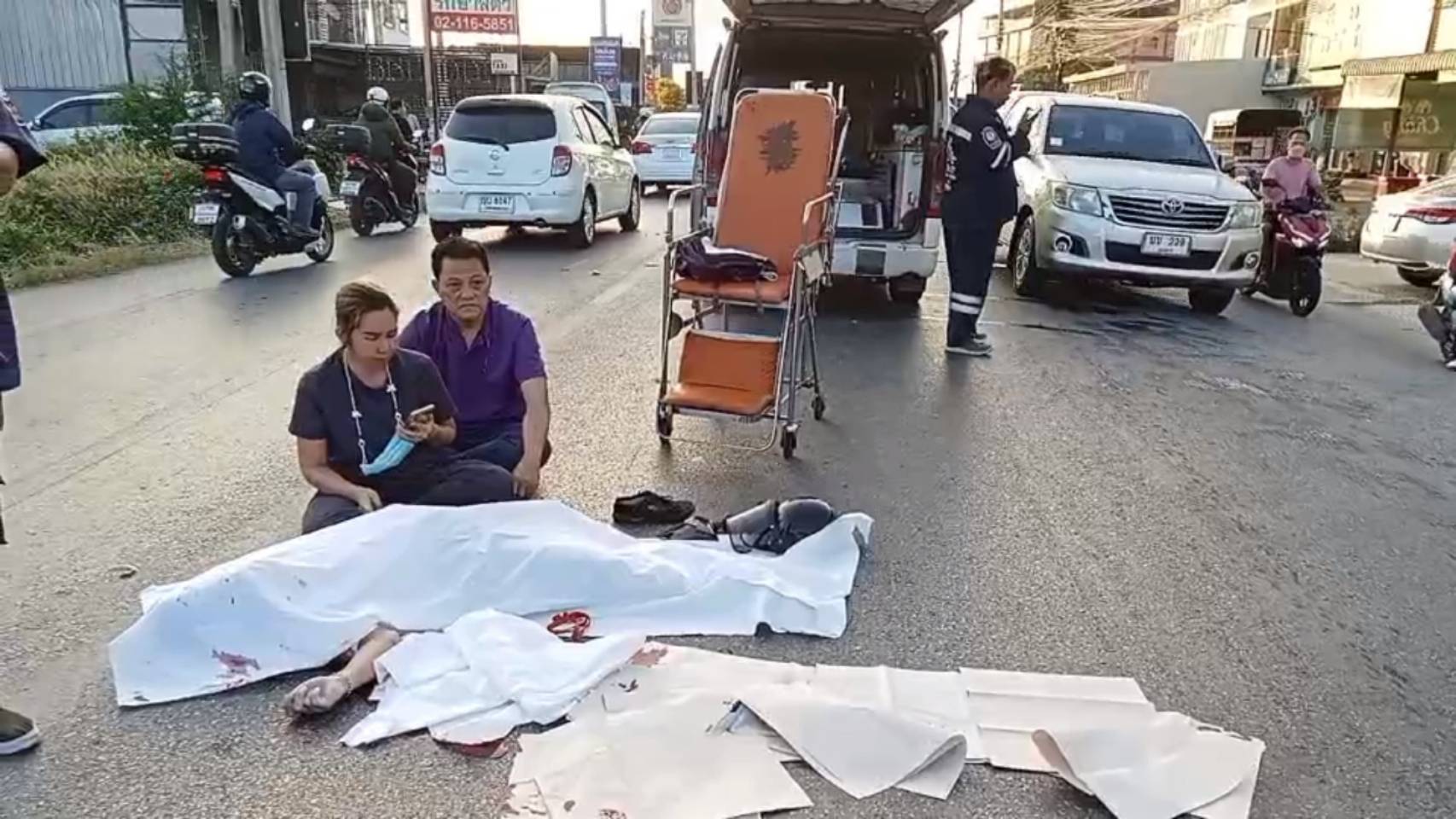 สุดสลด! แม่ร่ำไห้เฝ้าลูกกลางถนน หลังรถมอเตอร์ไซค์ล้ม ร่างหลุดข้ามเลนเจอรถตู้ชน จบชีวิตคาชุดนักเรียน