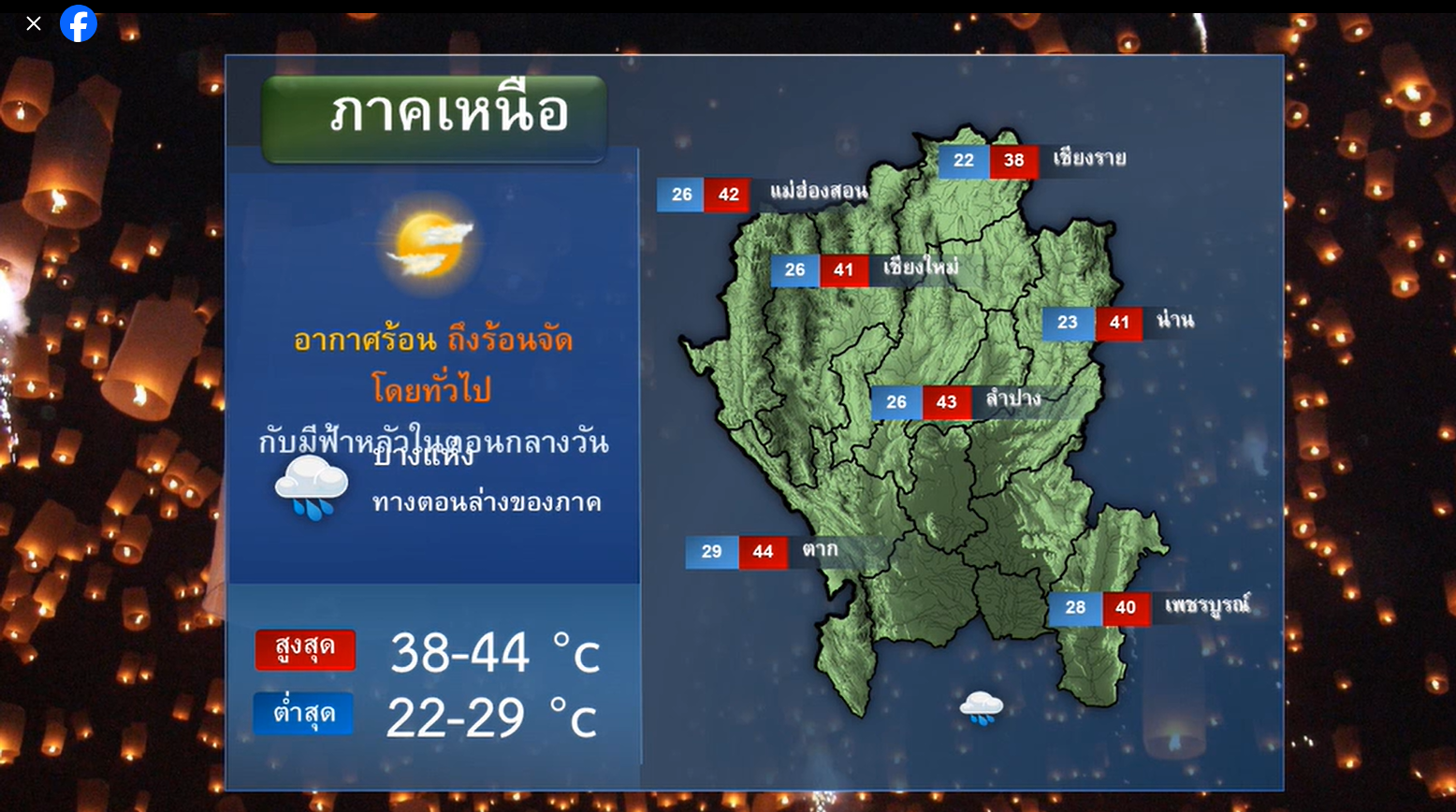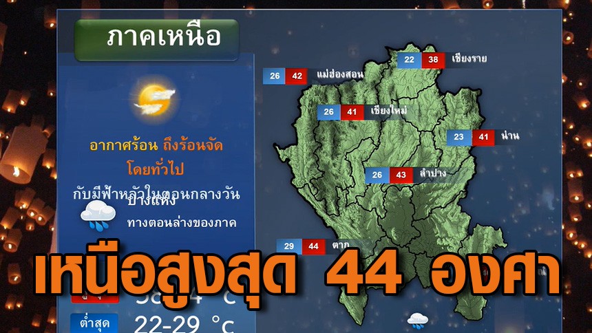 อุณหภูมิสูงสุด 38-44 องศาเซลเซียส