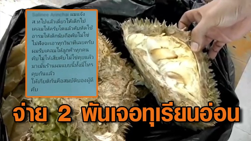 หญิงสุดทน ซื้อทุเรียน 2 พันบาทได้ทุเรียนอ่อน รอเปลี่ยน 5 วันยังไม่มา จึงโพสต์โซเชียล กลับถูกร้านต่อว่ากลับ