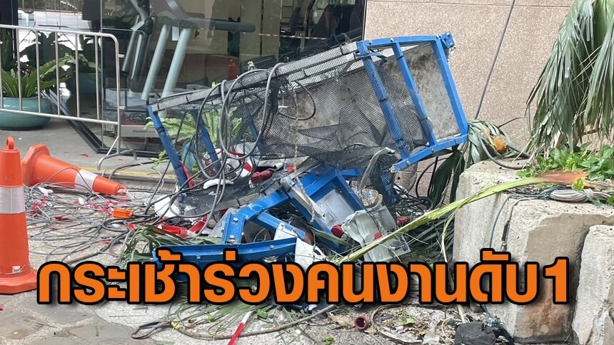 คนงานขึ้นกระเช้าเช็ดกระจก จู่ๆ กระเช้าร่วง ร่างกระแทกพื้นดับสลด