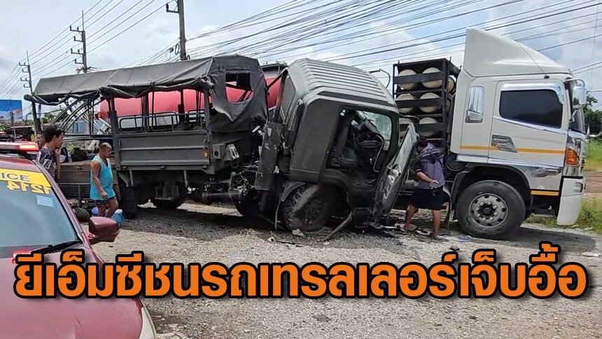 รถยีเอ็มซีทหารยางระเบิด เสียหลักพุ่งชนรถหางกล้วยหอมขนปูน ทหารเจ็บ 18 สาหัส 2