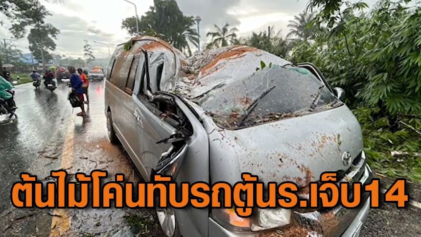 ฝนกระหน่ำ-ลมพัดต้นไม้ใหญ่โค่นทับรถตู้รับ-ส่งนักเรียน คนขับ-เด็กเจ็บ 14