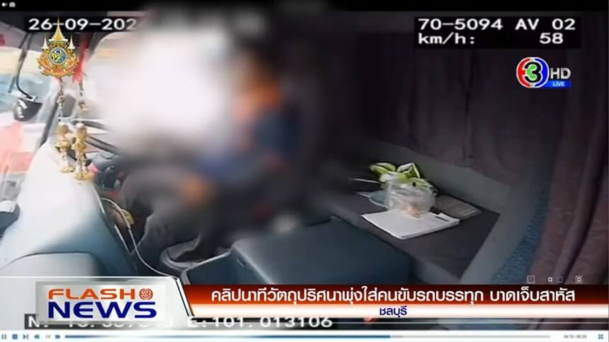 - เปิดคลิปนาทีวัตถุปริศนา พุ่งใส่คนขับรถบรรทุก บาดเจ็บสาหัส
