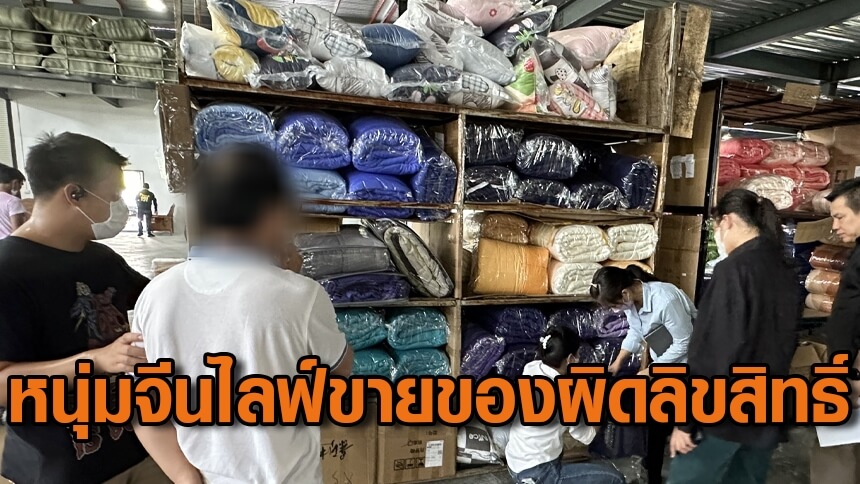 รวบหนุ่มจีนคาโกดัง ไลฟ์ขายที่นอนละเมิดลิขสิทธิ์ ยึดของกลางมูลค่ากว่า 40 ล้าน