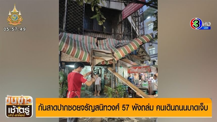 กันสาดปากซอยจรัญสนิทวงศ์ 57 พังถล่ม คนเดินถนนบาดเจ็บ