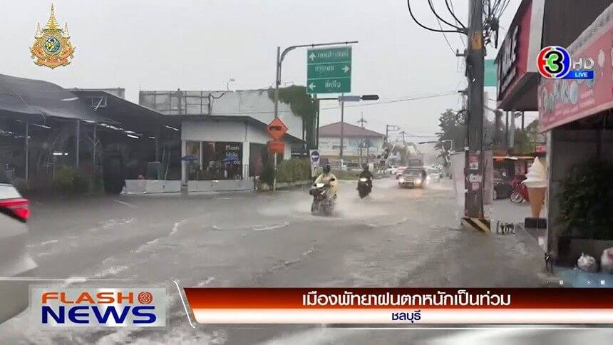 - พัทยาฝนตกหนักกว่า 1 ชม. ทำน้ำท่วมหลายจุด