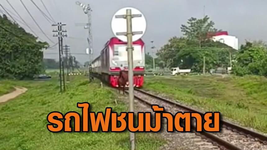 เศร้าสลด ม้าวิ่งตัดหน้ารถไฟ ถูกชนกระเด็นตายคาที่