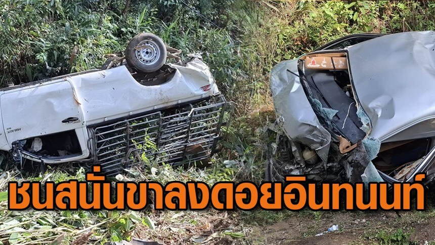ที่เกิดเหตุ รถยนต์ปาเจโร่ สีขาว ทะเบียน พะเยา พังเสียหายทั้งคันจอดกลางถนน ส่วนรถกระบะบรรทุกเสริมข้าง (คอก) สีขาว พุ่งไปข้างทางขาลงดอยซ้ายมือของถนน สภาพหงายท้อง และรถตู้สีขาว ทะเบียน พะเยา พุ่งลงไปข้างถนนสภาพรถหันหัวรถขึ้นดอยอินทนนท์ สภาพพังยับเยิน
