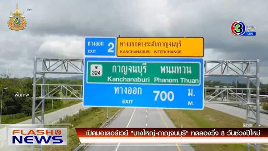 - เปิดมอเตอร์เวย์บางใหญ่-กาญจนบุรี ทดลองวิ่ง 8 วันช่วงปีใหม่