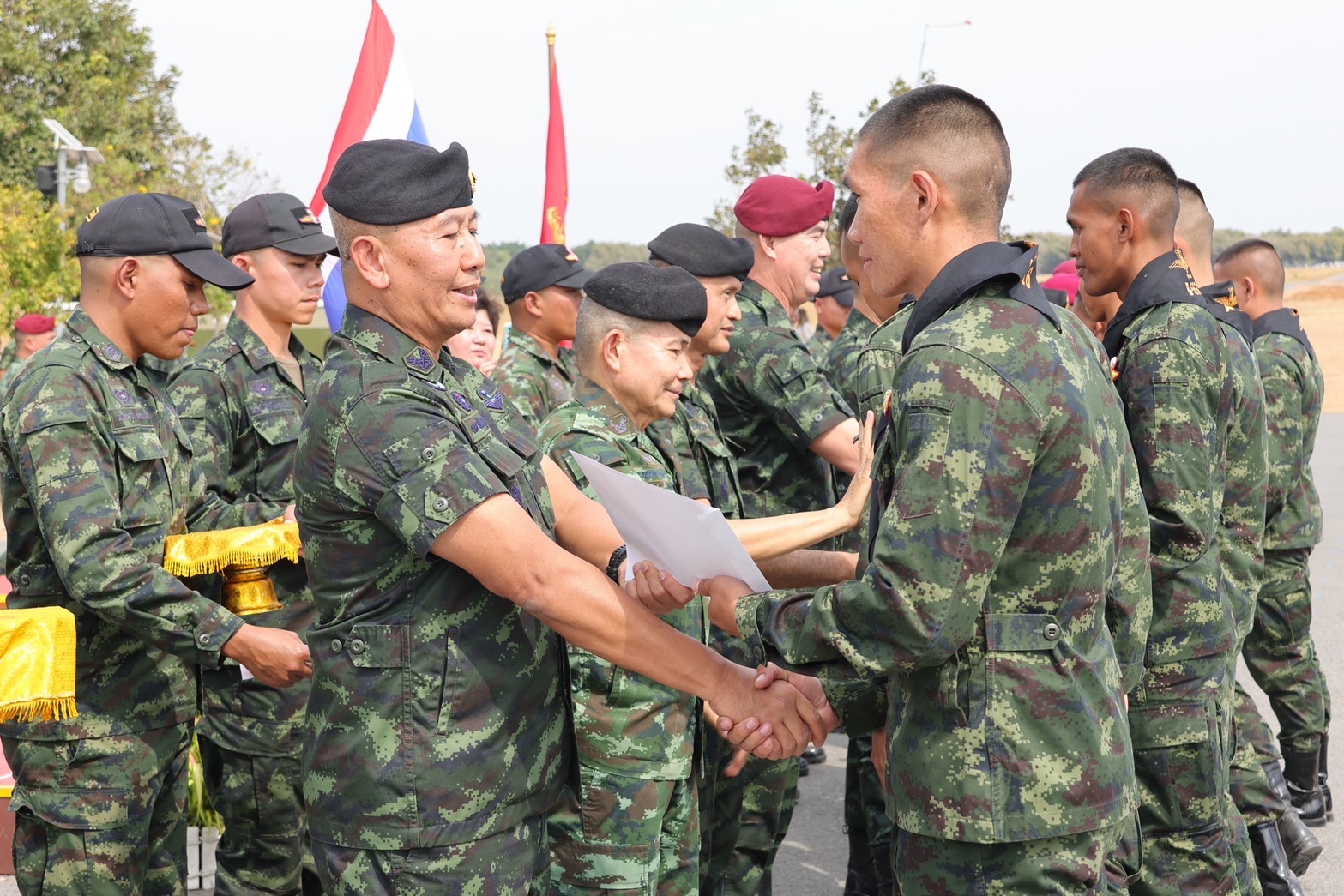 ทั้งนี้ ผู้บัญชาการทหารบกและคณะได้ร่วมรับชมการกระโดดร่มของนักเรียนในหลักสูตรฯ ก่อนประดับเครื่องหมายแสดงความสามารถนักโดดร่ม และมอบใบประกาศนียบัตร รวม 327 นาย พร้อมมอบโล่รางวัลการฝึกอบรมดีเด่นให้กับนักเรียนที่มีคะแนนการฝึกสูงสุด ได้แก่ นักเรียนนายร้อย เจษฎา แสนหาสิ่ว, รางวัลลักษณะผู้นำดีเด่น ที่ได้รับการคัดเลือกจากครูอาจารย์และเพื่อนร่วมรุ่น ได้แก่ นักเรียนนายร้อย ปริญ ขิตตะสังคะ และรางวัลทดสอบร่างกายดีเด่น ได้แก่ นักเรียนนายร้อย วัชรธร เดชบดีพงศ์