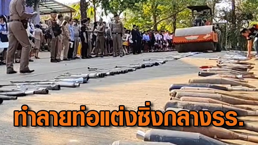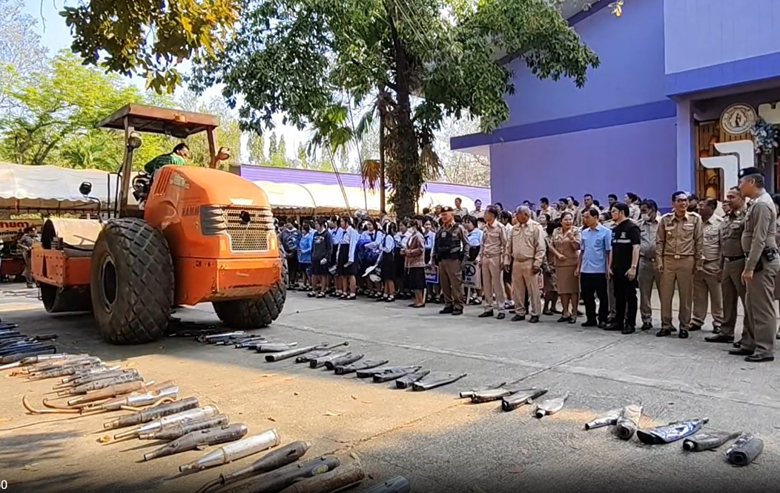 ตำรวจเมืองโคราช ขนท่อไอเสียจักรยานยนต์แต่งซิ่งกว่า 200 ชิ้น ที่สร้างความเดือดร้อนรำคาญให้กับชาวบ้าน มาทำลายกลางโรงเรียนมัธยม หวังสร้างสำนึก หยุดความคึกคะนองวัยรุ่น