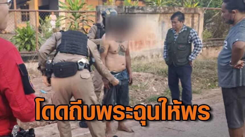 ชายกระโดดถีบพระฉุนให้พรตอนบิณฑบาต อ้างเป็นคำด่า ตำรวจตรวจพบสารเสพติด