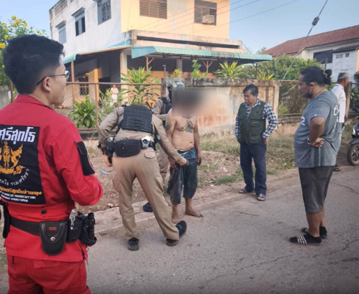 วันนี้ (4 มี.ค.68) เวลา 06.30 น. ตำรวจสายตรวจ สภ.บ้านดุง และเจ้าหน้าที่กู้ภัยสมาคมกู้ภัยศรีสุทโธบ้านดุง รับแจ้งมีคนชายทำร้ายพระสงฆ์ขณะบิณฑบาตที่ถนนด้านหลังตลาดสดเทศบาลเมืองบ้านดุง หลังรับแจ้งจึงเดินทางไปตรวจสอบทันที่ เมื่อไปถึงพบชายอายุประมาณ 45-50 ปี ยังไม่ทราบชื่อเสียงเรียงนาม ใส่กางเกงยีนส์สีน้ำเงินสามส่วน ไม่สวมเสื้อ บริเวณหน้าอก แผ่นหลังมีรอยสักยันต์หนุมานเชิญธงและสร้อยสังวาลเต็มตัว โดยมีชาวบ้านแถวนั้นช่วยกันจับตัวเอาไว้ได้หลังกระโดดถีบพระขณะบิณฑบาตจนได้รับบาดเจ็บ ตำรวจพยายามสอบถามว่าเป็นใครมาจากไหน เจ้าตัวก็ไม่ยอมพูดได้แต่นั่งนิ่ง จึงเชิญตัวมา สภ.บ้านดุง เพื่อสติอารมณ์