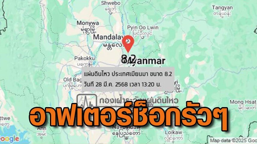 จากกรณีแผ่นดินไหวเมื่อวันที่ 28 มี.ค. 2568 เมื่อเวลา 13.20 น. ขนาด 8.2 ความลึก 10 กิโลเมตร โดยมีจุดศูนย์กลางที่ประเทศเมียนมา ทำให้เกิดผลกระทบถึงประเทศไทยด้วย และเกิดอาฟเตอร์ช็อกตามมาอีกหลายครั้งนั้น