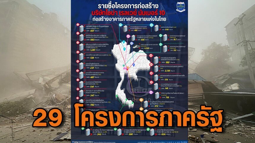 เปิดรายชื่อ 29 โครงการภาครัฐที่บริษัท ไชน่า เรลเวย์ นัมเบอร์ 10 ร่วมก่อสร้าง และ 11 กิจการร่วมค้า
