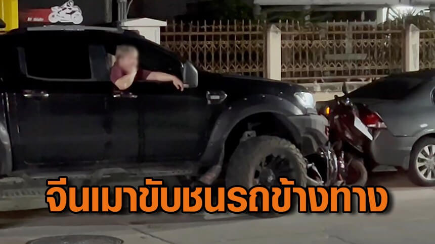 หนุ่มจีนเมาขับกระบะชนรถข้างทางพังยับ เบิ้ลเครื่องชนซ้ำอ้วกหนักหลับคารถ