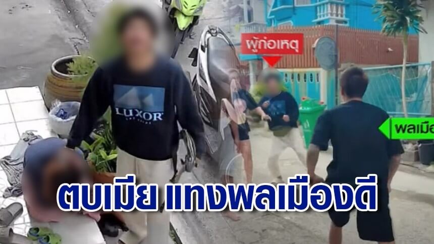 เมียถูกผัวทำร้าย วิ่งขอความช่วยเหลือ ผัวยังไม่จบ ตามไปทะเลาะเพื่อนบ้าน แทงคอเลือดสาด