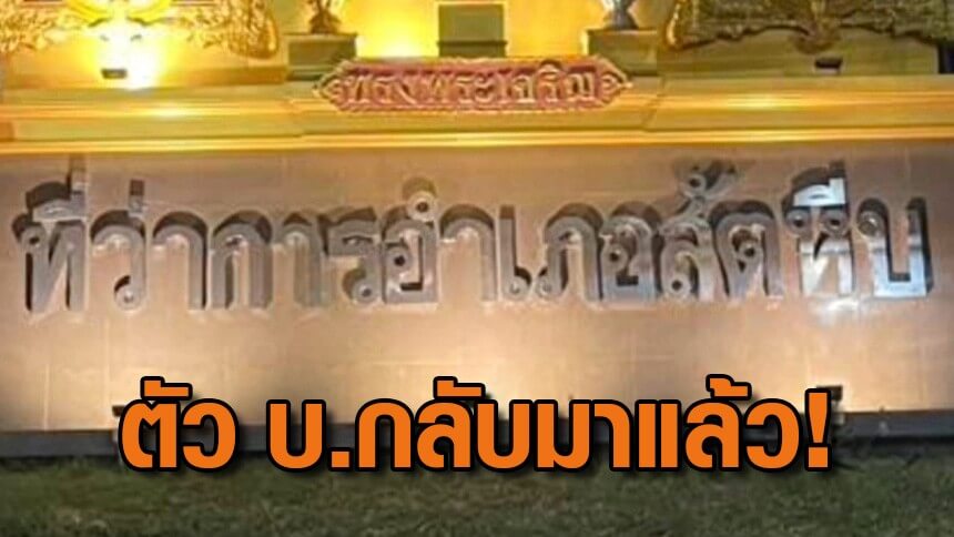 แก้ไขเรียบร้อย! นำตัว “บ.” กลับติดป้ายหน้าอำเภอสัตหีบ หลังถูกพายุพัดหลุดเสียหาย จนโดนโซเชียลแซวฉ่ำ เจ้าหน้าที่เร่งตรวจสอบป้ายอื่นๆ ป้องกันไม่ให้เกิดเหตุซ้ำ