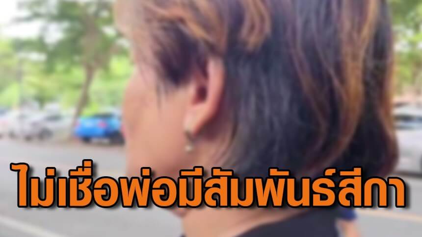 เมื่อถามว่ารู้สึกอย่างไร ตนเองยังไม่รู้สึกอะไร เพราะว่ายังไม่รู้ว่าความจริงเป็นมาอย่างไร ส่วนตัวแล้วยังไม่เชื่อคำพูดพ่อ เพราะพ่อเป็นคนที่ชอบพูดเล่นอยู่แล้ว แหย่หยอกแม่อยู่ตลอด ซึ่งคำพูดของพ่อ ตอนเช้าก็พูดปฏิเสธไป พอตกเย็นมายอมรับ ก็เลยทำให้งง ตนเองก็ยังไม่ได้คุยกับพ่อ คิดว่าพ่อพูดเพราะว่าเมา เนื่องจากดื่มเข้าไปเยอะ อาจจะครองสติตนเองไม่ไหว ส่วนตัวแล้วไม่เคยรู้จักกับสีกากอล์ฟ และไม่เคยเจอกันด้วย