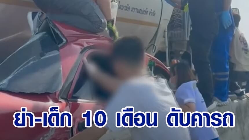 เกิดเหตุสลด รถบรรทุกหกล้อ เสียหลักเบียดอัดก็อปปี้้เก๋งครอบครัว 4 ชีวิต ลูกวัย 10 เดือน ดับคาอกแม่ พร้อมย่านั่งเบาะหลัง