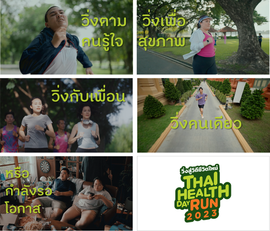 • จึงเป็นที่มาที่ในปี 2566 นี้ สสส. และ งานวิ่ง Thai Health Day Run 2023 ยังสานต่อสร้างค่านิยมในการวิ่ง เพื่อสร้างนักวิ่งหน้าใหม่สู่สังคมผ่านแนวคิด “วิ่งสู่วิถีชีวิตใหม่ไปด้วยกัน READY TO MOVE ON” การสื่อสารภายใต้แคมเปญจะสนับสนุนแนวคิดในการวิ่ง และกระตุ้นให้คนลุกและก้าวออกวิ่งผ่านสปอตรณรงค์ที่แสดงให้เห็นว่า ไม่ว่าการวิ่งของคุณจะเป็นแบบไหน ขอแค่ออกมาวิ่ง ชีวิตของคุณจะดีขึ้น โดยสปอตรณรงค์ชุดนี้ได้สอดแทรกประเด็นและคำตอบที่หลายคนที่เคยคิดจะออกวิ่ง แต่ยังไม่เริ่มวิ่งไว้ในสปอตรณรงค์ชุดนี้ อาทิ หลายคนตั้งเงื่อนไขให้ตัวเองในเรื่องเวลา : ไม่มีสถานที่วิ่งที่ใกล้ : ตัวคนเดียว ไม่รู้จะวิ่งกับใคร : รู้สึกจำเจกับสถานที่ : วิ่งแล้วไม่สนุก และอื่น ภายในสปอตรณรงค์ยังมีสถานที่วิ่งมากมายที่หลายคนอาจรู้จัก และสถานที่ใหม่ๆ ที่หลายคนอาจยังนึกไม่ถึง สามารถติดตามสปอตรณรงค์ ชุด ใครๆก็วิ่ง
