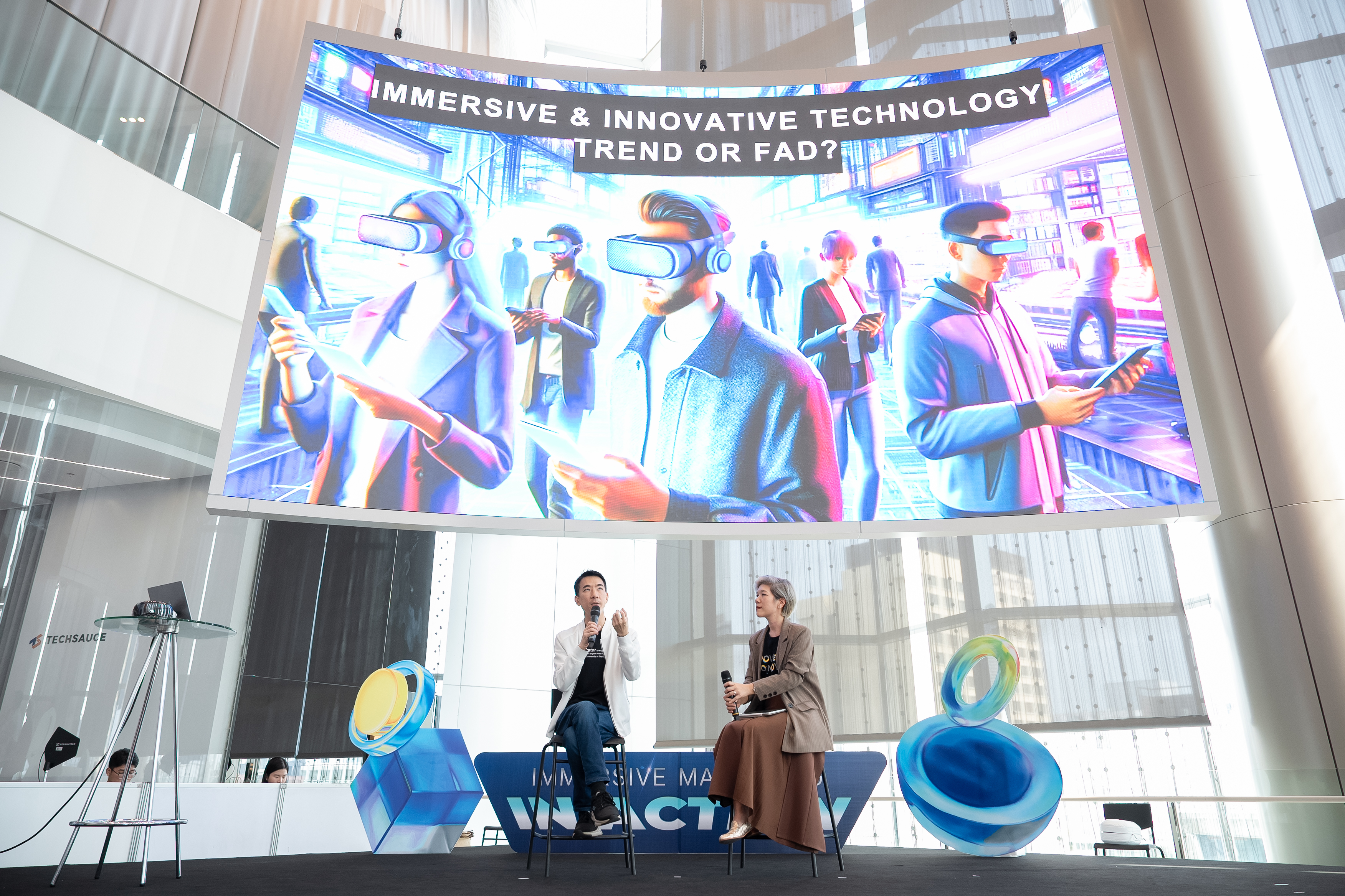 งานสัมมนา Immersive Marketing in Action ที่จัดขึ้นในวันที่ 9 เมษายน 2567 ณ SCBx NextTech ศูนย์การค้าสยามพารากอน มีนักการตลาดเข้าร่วมมากกว่า 200 ราย และมีวิทยากรที่มาจากหลากหลายสาขามาร่วมแบ่งปันแนวคิดในการทำ Immersive Campaign อย่างมีประสิทธิภาพ เช่น คุณขจร เจียรนัยพานิชย์ กรรมการผู้จัดการ บริษัท The Zero Publishing จำกัด เจ้าของเว็บ Mango Zero, Parents One, Thumbsup, MacThai และ RAiNMaker ซึ่งมีประสบการณ์ในการใช้ Apple Vision Pro รวมถึงคุณสโรจ เลาหศิริ ที่ปรึกษาด้าน Marketing Transformation และคุณเสถียร บุญมานันท์ ประธานเจ้าหน้าที่บริหารและผู้ก่อตั้ง บริษัท Metaverse XR จำกัด และ คุณฐาปกรณ์ หาญรักษ์ Head of Product and Solution บริษัท Brainergy จำกัด