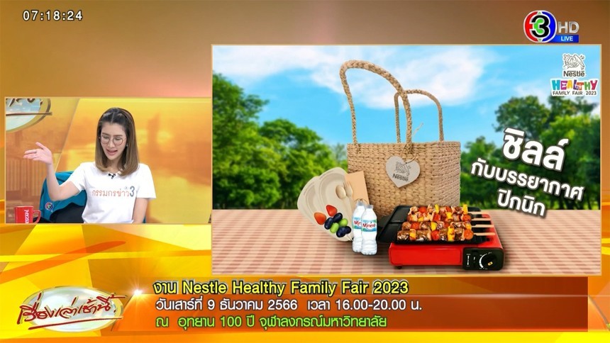 ผู้โชคดีเรื่องเล่าเช้านี้ วันศุกร์ที่ 24 พฤศจิกายน 2566 ได้รับสิทธิร่วมงาน Nestle Healthy Family Fair 2023 ปิกนิกบาร์บีคิวสุขภาพ ส.9 ธ.ค.66 ณ อุทยาน 100 ปี จุฬาลงกรณ์มหาวิทยาลัย แจก 10 รางวัล เวลา 07.17-จบรายการ (ศุกร์หรรษา)