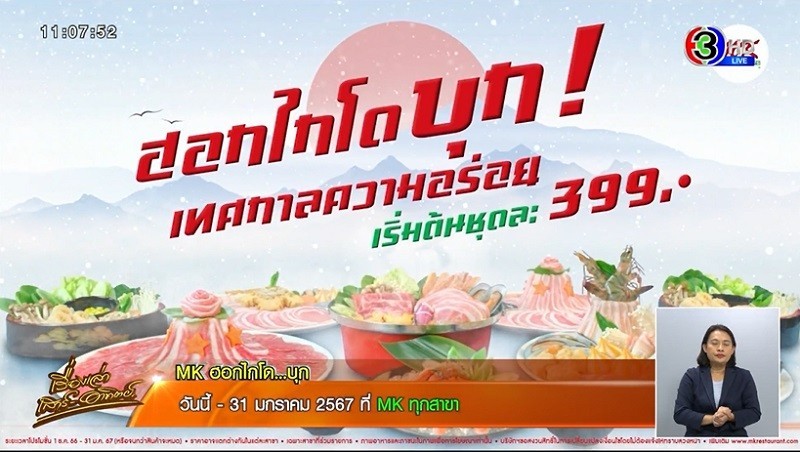 ผู้โชคดีเรื่องเล่าเสาร์-อาทิตย์ วันเสาร์ที่ 30 ธันวาคม 2566 ได้รับ Gift Voucher จาก MK มูลค่า 1,500 บาท+ตุ๊กตาเป็ด MK 5 รางวัล เวลา 11:07-จบรายการ (สวัสดีปีใหม่)