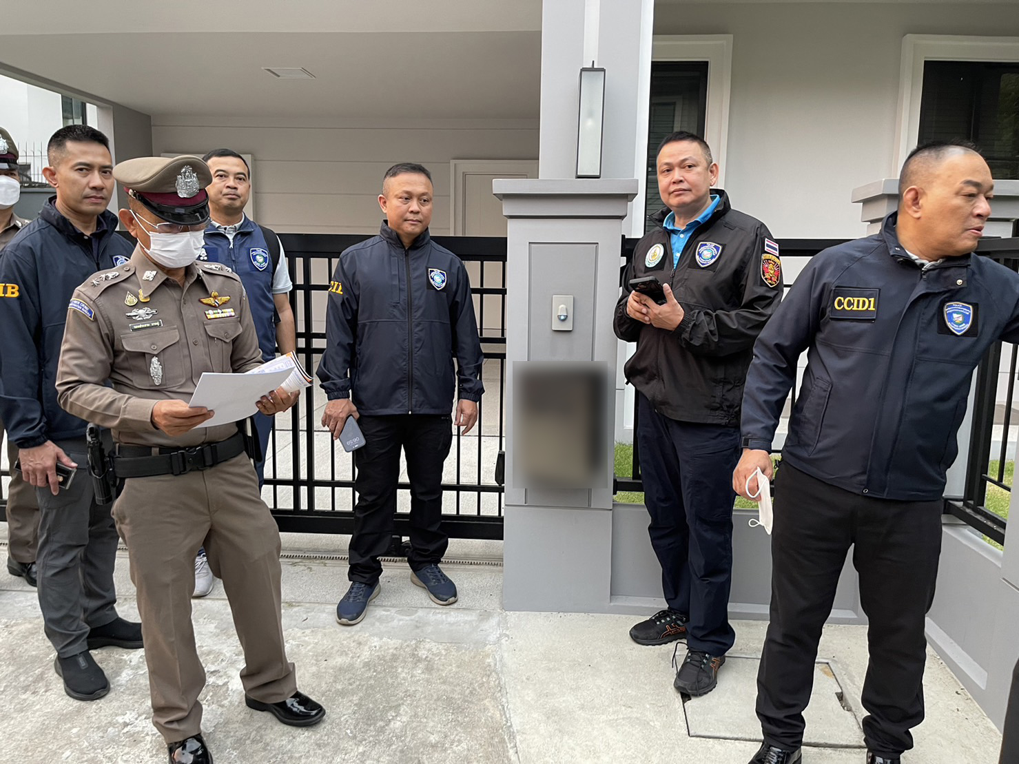 ต่อมาเช้าวันนี้ (3 กุมภาพันธ์ 2566) พล.ต.ต.วิวัฒน์ คำชำนาญ รอง ผบช.สอท. พร้อมด้วย พล.ต.ต.ชัชปัณฑกานต์ คล้ายคลึง ผบก.สอท.1 พร้อมเจ้าหน้าที่ตำรวจในสังกัด บก.สอท.1 ได้นำหมายค้นของศาลอาญา เข้าตรวจค้นที่บ้านหรูหลังหนึ่ง ถนนเลียบคลองประปา ตำบลบ้านใหม่ อำเภอปากเกร็ด จังหวัดนนทบุรี ซึ่งจากการสืบสวนพบว่า บ้านหลังนี้เป็นบ้านพักของ นายณัฐพงศ์ ระชินลา ผู้ต้องหาหนึ่งในขบวนการ ซึ่งทำหน้าที่การเงินการธนาคาร และรวบรวมโพยพนัน