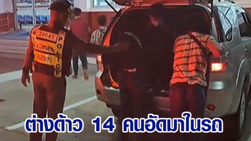 ตร.เห็นรถหนักผิดปกติ เรียกตรวจ เจอต่างด้าว 14 คนอัดมาในรถ