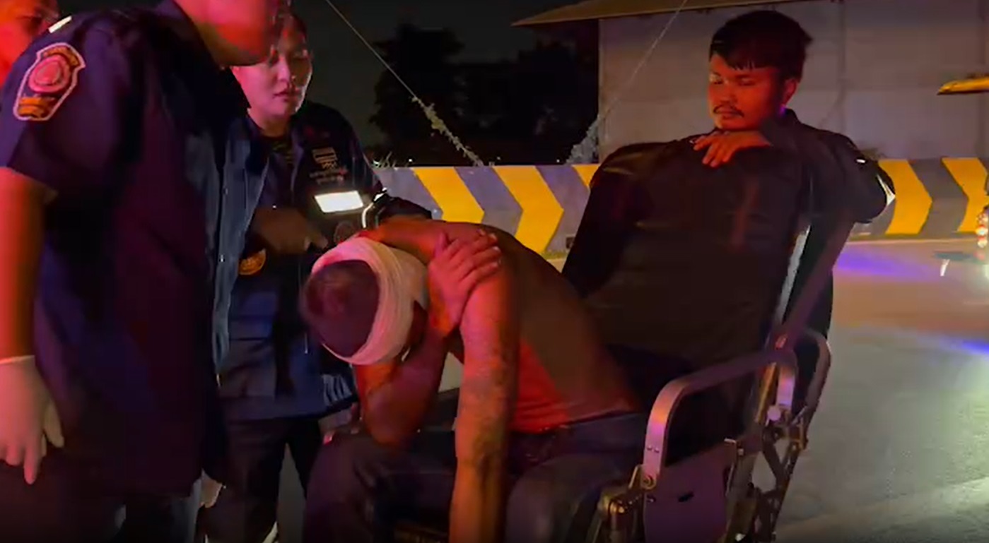 เมื่อกู้ภัยไปถึงพบตัวนายวินัย สุมาลี อายุ 35 ปี มีบาดแผลคล้ายถูกของมีคมฟันที่ศีรษะ 1 แผลเลือดท่วมตัวและอยู่อาการมึนเมา ส่วนอีก 1 คน คือนายภูตะวัน เจ๊กจันทึก อายุ 20 ปี ปูดบวมที่ศีรษะและเจ็บตามร่างจากการถูกทำร้ายโดยทั้ง 2 คน อยู่บริเวณริมทาง ขณะเดียวกันยังพบรถจักรยานยนต์สีฟ้า ไม่ติดแผ่นป้ายทะเบียนจอดอยู่ที่ตัวรถพบคราบเลือดติดอยู่จำนวนมาก หลังเกิดเหตุทางกู้ภัยได้ปฐมพยาบาลเบื้องต้นตนก่อนนำตัวผู้บาดเจ็บไปส่ง รพ.ปากเกร็ด 2
