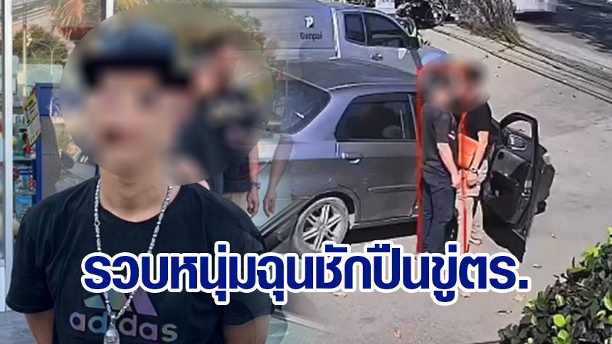 รวบแล้ว! หนุ่มหัวร้อนชักปืนขู่ตำรวจ ขับรถแย่งกันออกปั๊ม จนท.แจ้ง 2 ข้อหาหนัก