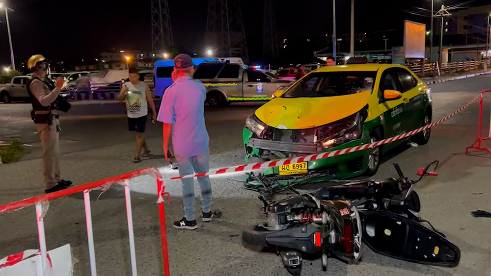 ส่วนนายนิกร พิทักษ์พรชัยกุล อายุ 56 ปี คนขับแท็กซี่ กล่าวว่า ตน ขับรถมาจากท้ายซอยมุ่งหน้าถนนเทพารักษ์ ด้วยความเร็วประมาณ 60-70 กิโลเมตรต่อชั่วโมง เมื่อมาถึงจุดเกิดเหตุ จู่ๆ รถจักรยานยนต์ของคู่กรณี ขับขี่ตัดหน้าอย่างกะทันหัน ตนไม่ทันได้เบรก พุ่งชนเข้าอย่างเต็มแรง เป็นเหตุให้รถพัง ตัวคนขับขี่จักรยานยนต์ได้รับบาดเจ็บดังกล่าว