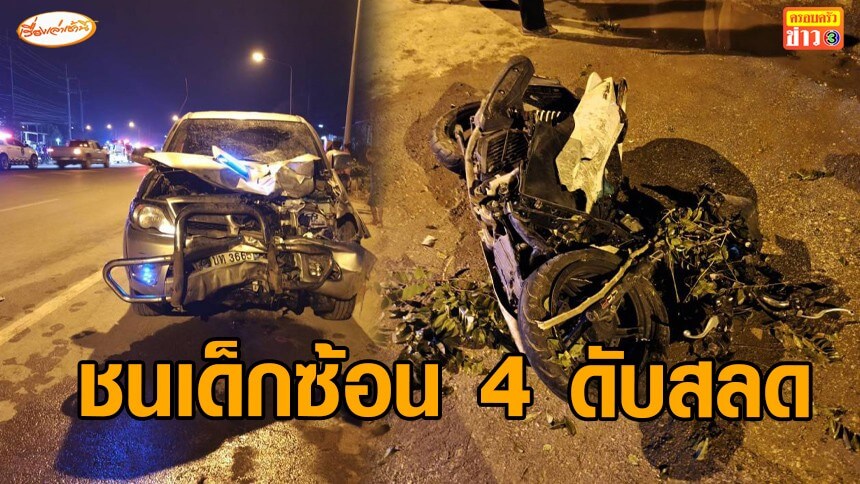 เด็กชายซ้อน 4 ขี่ จยย.กลับจากเล่นน้ำสงกรานต์ ถูกกระบะข้ามเลน ชนดับสลดทั้ง 4